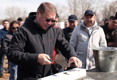 Аким Костанайской области заложил первый кирпич в строительстве стадиона на горпляже