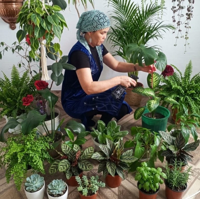 – Үйімде гүл өте көп. Тіпті бір бөлмені түгелдей гүлге толтырдым десем болады. Қазір ол бөлме шағын оранжерея сияқты. Онда гүлдің бірнеше түрі өсіп тұр. Әр гүлдің өз күтімі бар, соған қарай баптап, суарып отырамын. Жүрген жерімде түрлі гүлдердің бір жапырағын алып тамырлатып, отырғыза қоямын, – дейді ол.