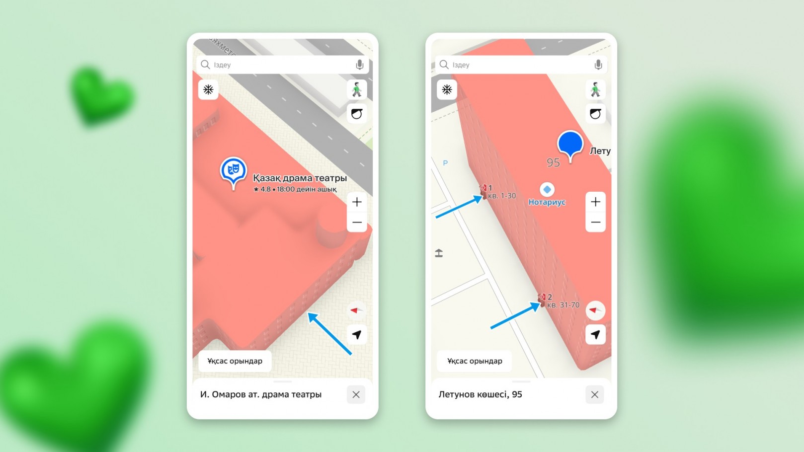- Маршрутты қосасыз — 2ГИС сізді дәл керек есікке дейін алып барады.