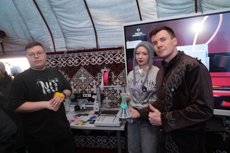 В юрте представлена 3D-печать — это различные фигуры и сам 3D-принтер, а также VR-очки, с помощью которых можно окунуться в атмосферу Казахстана: «погулять» по юрте и степям.