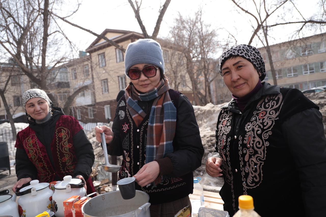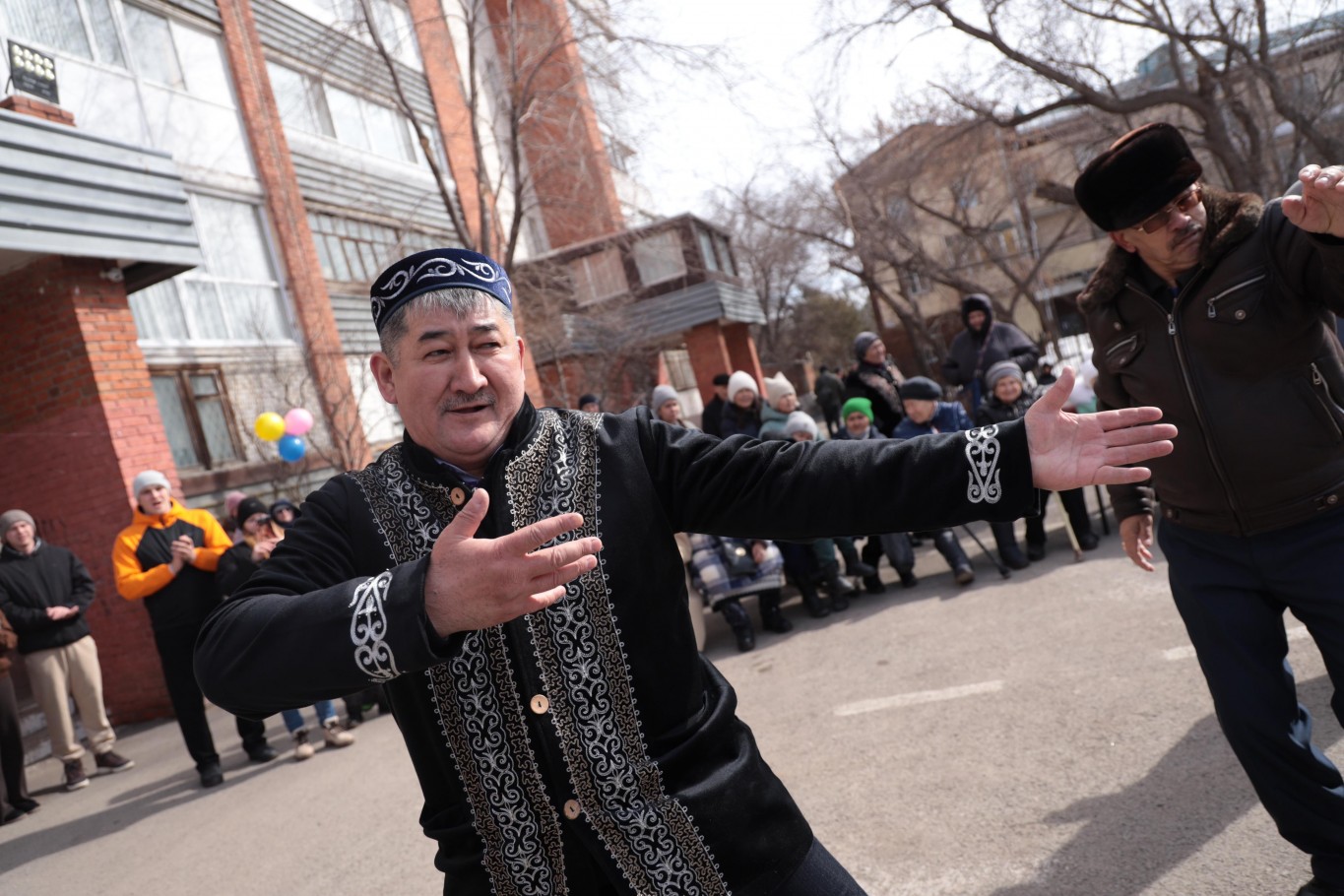 — Мы каждый год отмечаем праздник у себя во дворе — организуем его вместе с жильцами. В этом году вообще поставили полноценную юрту. Как видите, все атрибуты — это все принесли наши соседи, каждый из своего дома. Сегодня выступали сами жители: играли на домбре, участвовали в программе. Мы никого со стороны не приглашали, ни из филармонии — все сделали своими силами. Люди скинулись, организовали угощение, приготовили плов, — рассказывает Ахметов.