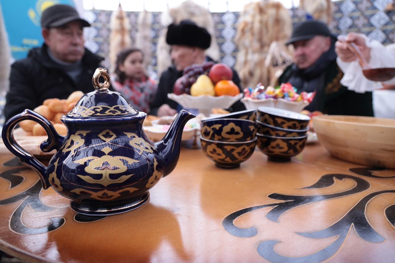 В конце программы всех жителей и гостей пригласили к столу, где их ждали горячий чай, баурсаки и свежеприготовленный плов.
