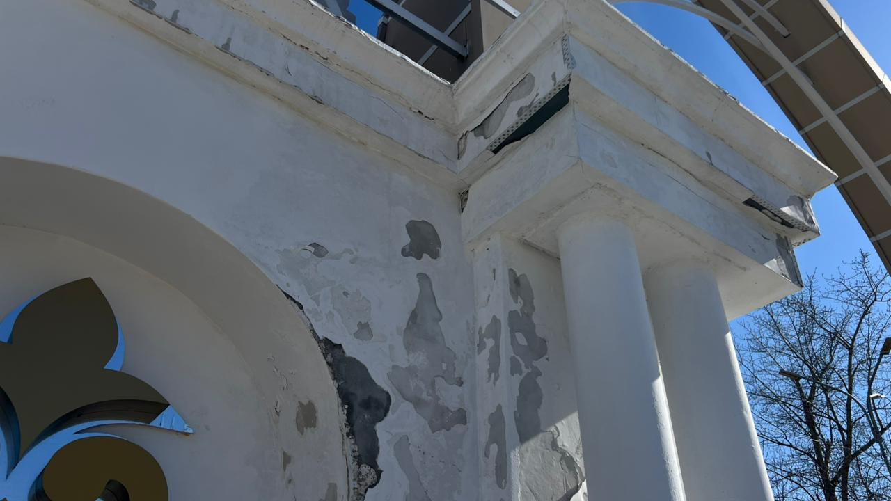 Что мы видим сегодня? Краска на арке снова облупилась, объект выглядит почти так же плохо, как и до ремонта. К слову, по договору у подрядчика есть гарантийные обязательства в течение 24 месяцев со дня ввода объекта. Так что ситуацию можно исправить, но в то же время возникают вопросы о качестве выполнения работ и материалов. Неужели 9 млн тенге не хватило на добротный ремонт нескольких колонн?