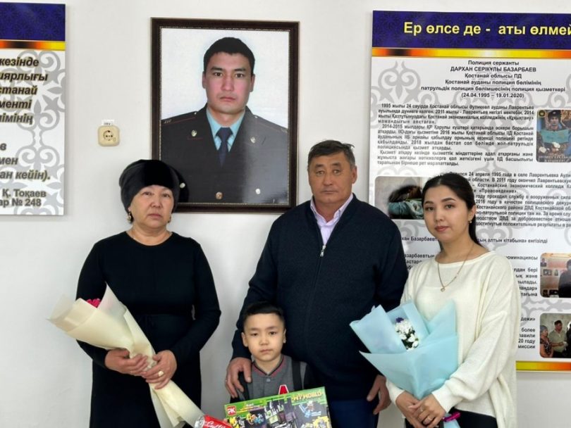 Қостанай қаласындағы Физика-математика лицейінде ерлікпен қаза тапқан полиция қызметкері Дархан Базарбаевтың құрметіне «Жас сақшы» патриоттық сыныбы ашылды.