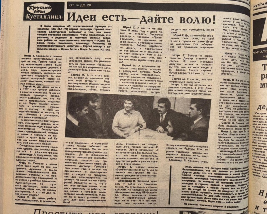 Перелистываем полосу. Здесь мы видим интересный материал в формате круглого стола: кустанайские комсомольцы рассказывают о своих проблемах и делятся предложениями.