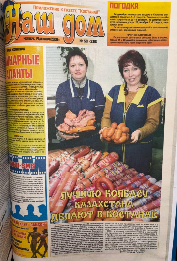 Переходим к разделу «Наш дом», и вновь костанайцы стали лучшими! На этот раз наша местная колбаса от цеха «Фаворит» была признана лучшей на выставке «World Food Kazakhstan – 2006» в Алматы. Цех работает до сих пор.