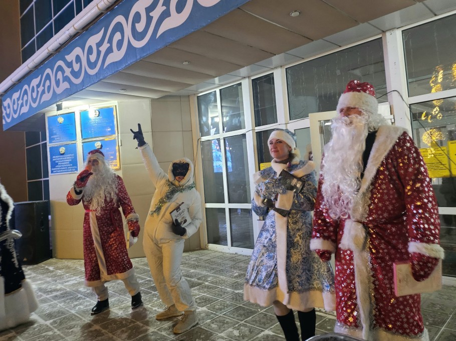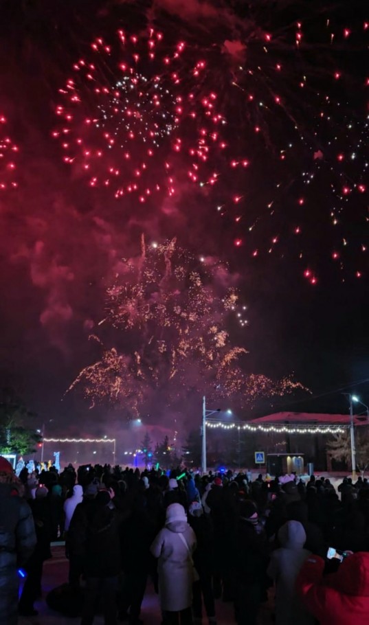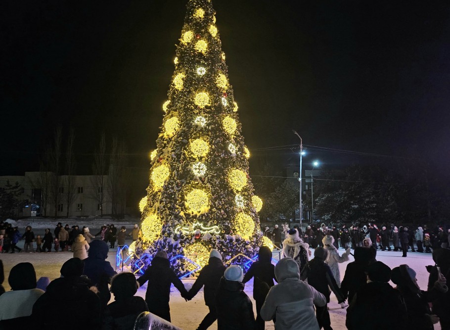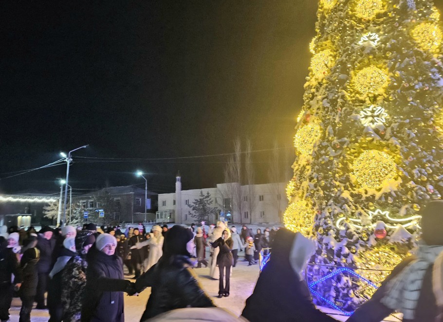 Уже в 00:30 горожане собирались вокруг главной елки города возле ДК «Алтын дән»: пели, танцевали, соревновались, водили хороводы, а главное — дарили тепло друг другу.