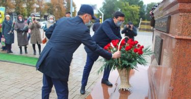 Первым делом Асхат Аймагамбетов вместе с акимом области возложил цветы к памятнику Ибраю Алтынсарину