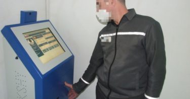 Чтобы отправить обращение, осужденному необходимо ввести свой ИИН и прижать палец к терминалу