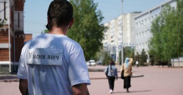 Волонтеры с надписью на футболках «У меня ВИЧ» предлагали горожанам обняться