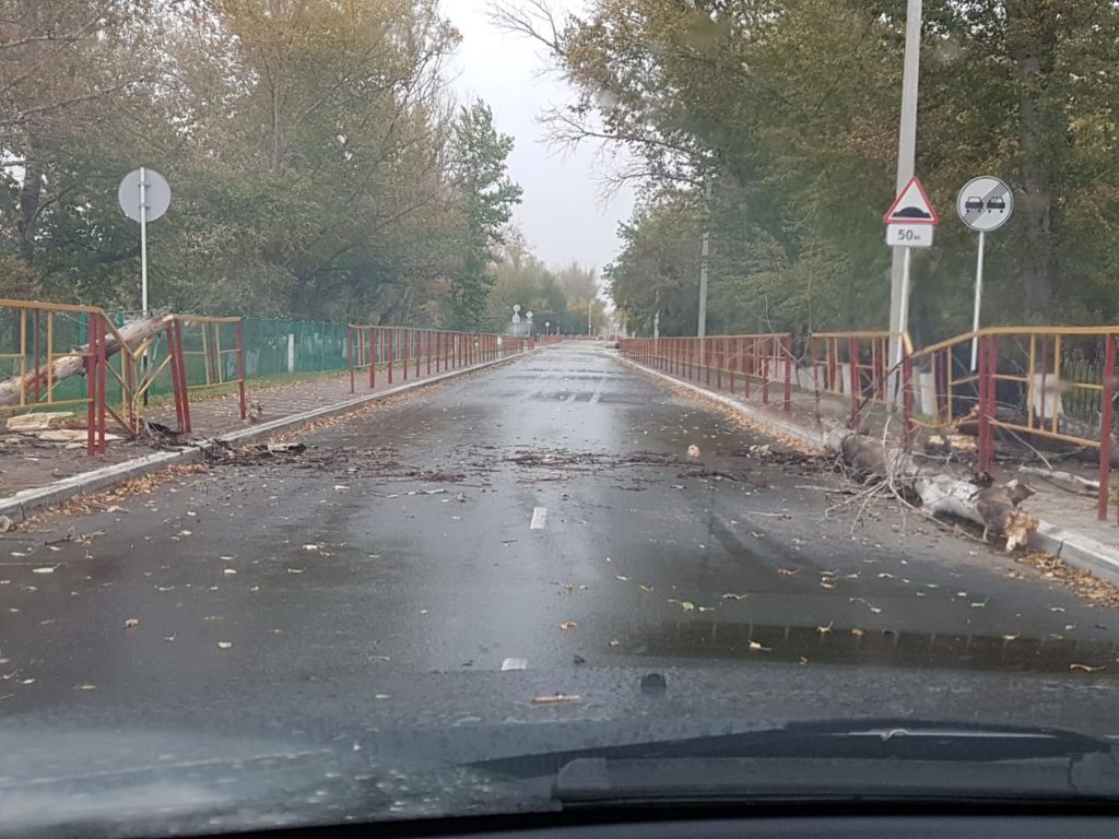 Сильный порывистый ветер в Костанае ломает деревья