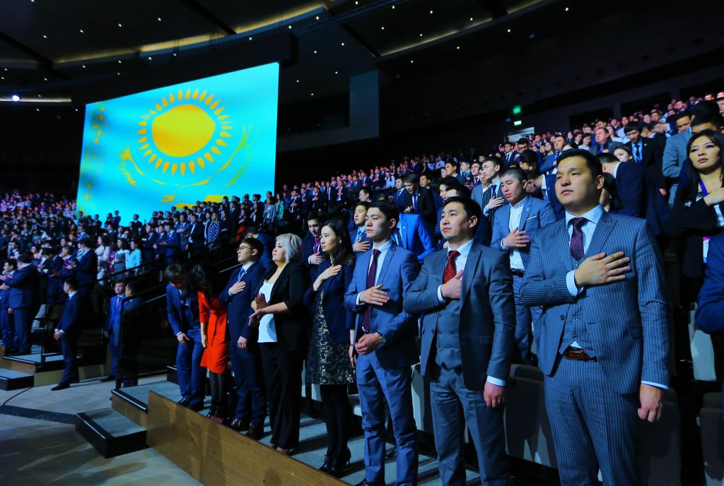 Президент Казахстана с удовольствием фотографировался с участниками большого молодёжного...