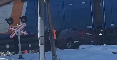 Тепловоз столкнулся с легковым автомобилем на железнодорожных...