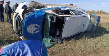 Патрульная машина опрокинулась в кювет в Костанайской области