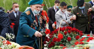 В парк Победы весь день идут костанайцы, чтобы возложить цветы к...