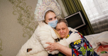 Конечно, к старикам они пришли в образах Деда Мороза и Снегурочки и не с пустыми руками