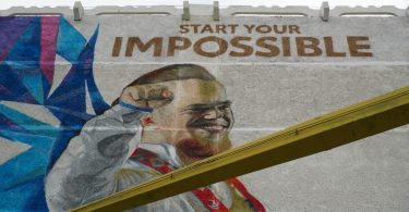На многоэтажке по ул. Хакимжановой появилось изображение паралимпийского чемпиона Давида Дегтярева