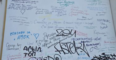Вандалы испортили баннер на здании Русского драмтеатра в Костанае