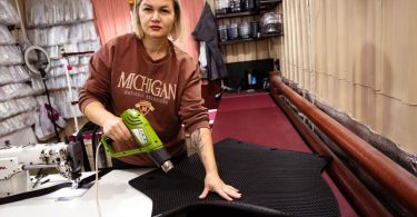 Швея Мария Сотникова изготавливает автомобильные коврики