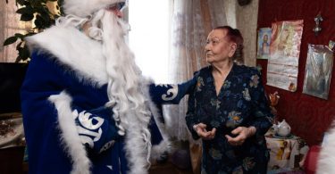 Дед Мороз Денис Тесленко и Снегурочка Екатерина Усова в этом году поздравили 15 одиноких стариков