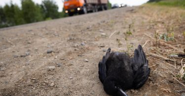 Мертвые дикие птицы лежат на небольшом отрезке дороги.