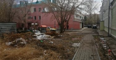 Находится он во дворе домов ул. Алтынсарина, 115, 117, ул. Тәуелсіздік, 83, ул. Дулатова, 58