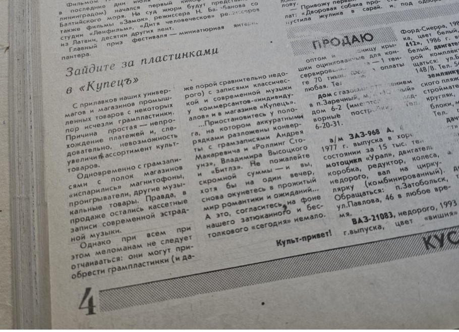 — С некоторых пор исчезли грампластинки. Причина простая — непрохождение платежей и, следовательно, невозможность увеличить ассортимент культтоваров.