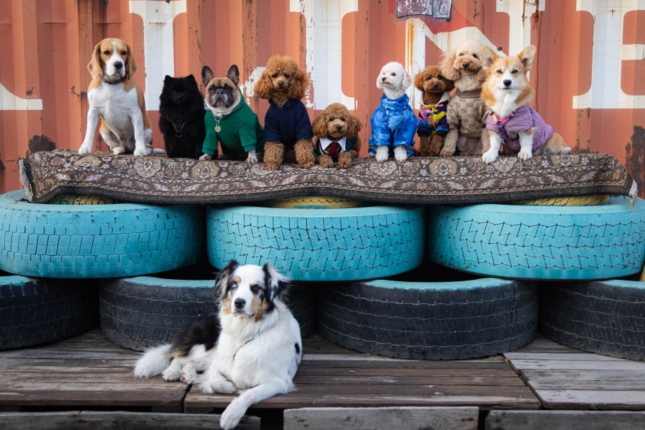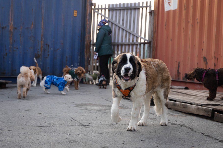 Обычно в группе от 5 до 10 собак разных возрастов и весовых категорий. Самая маленькая – около 800 грамм, благодаря проделанной работе она чувствует себя уверенно рядом с другими воспитанниками, в десятки раз превышающими ее в размере.