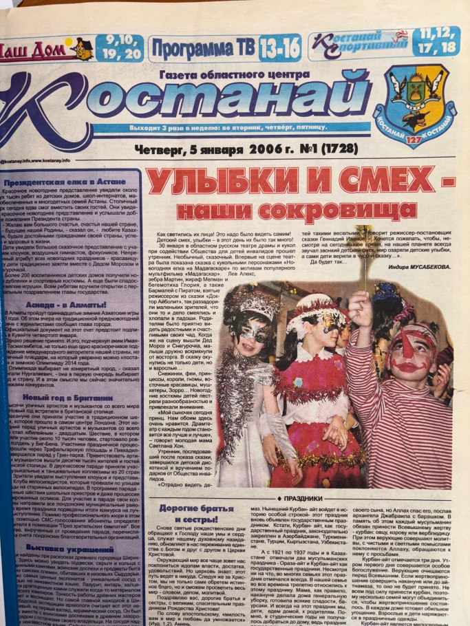 На первой полосе первого газетного номера 2006 года читателей встречают улыбки детей в карнавальных костюмах. 30 декабря 2005 года в областном театре драмы и кукол прошел утренник в стиле популярного мультфильма «Мадагаскар».