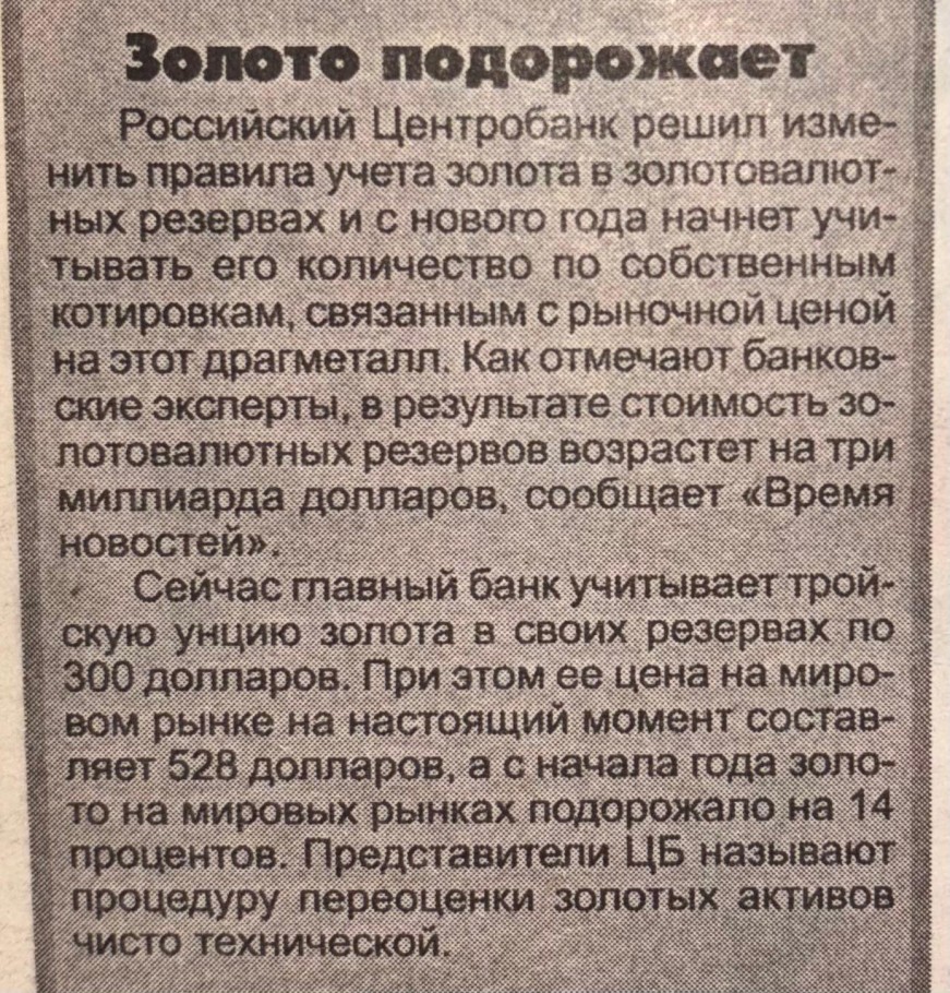 Также на информационной полосе размещена заметка о росте стоимости золота. В 2006 году она составляла 528 долларов за унцию, а в 2026 году – 4 470 долларов. Таким образом, за 20 лет стоимость золота выросла почти в 8,5 раза, или примерно на 750%.
