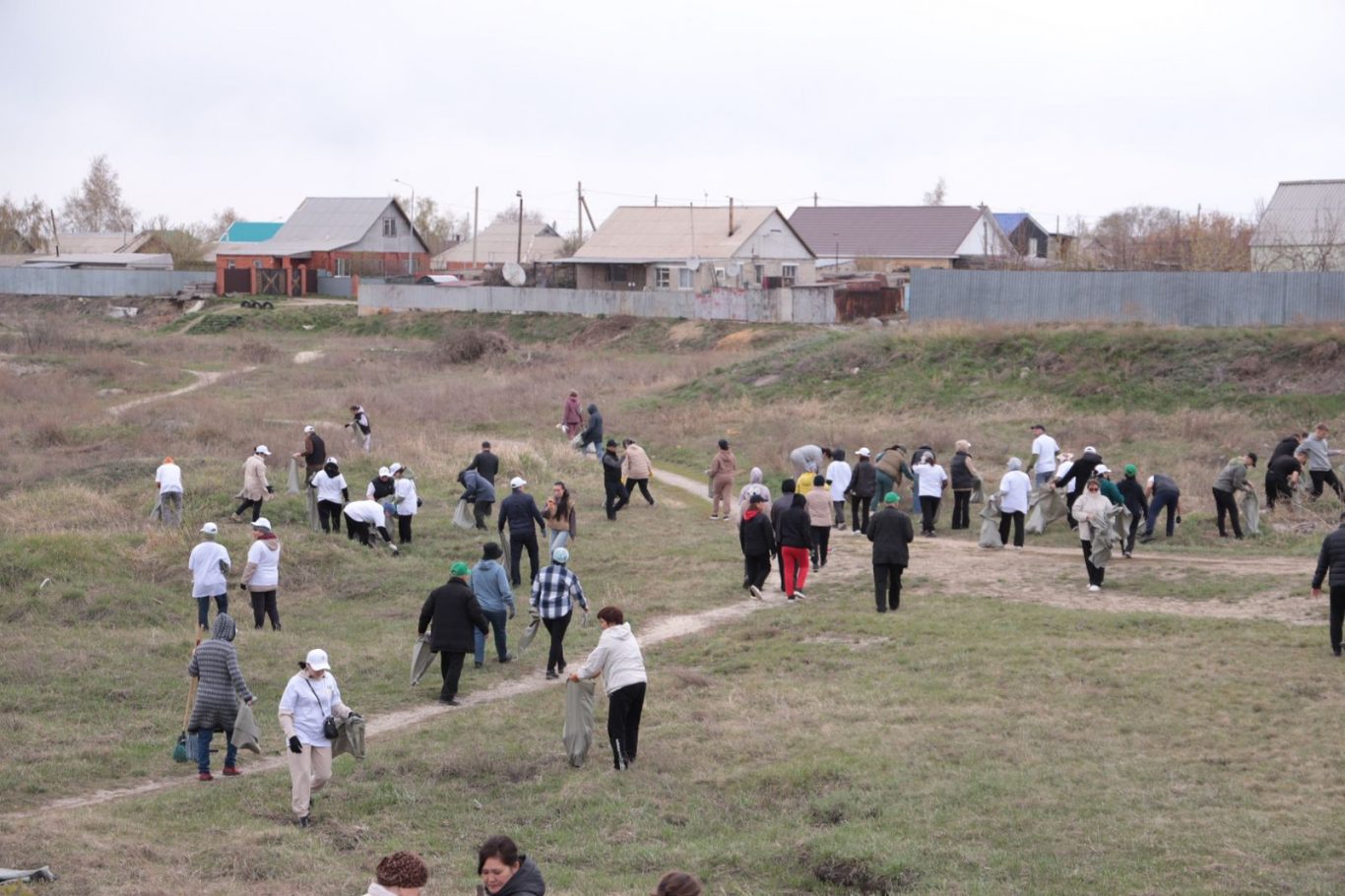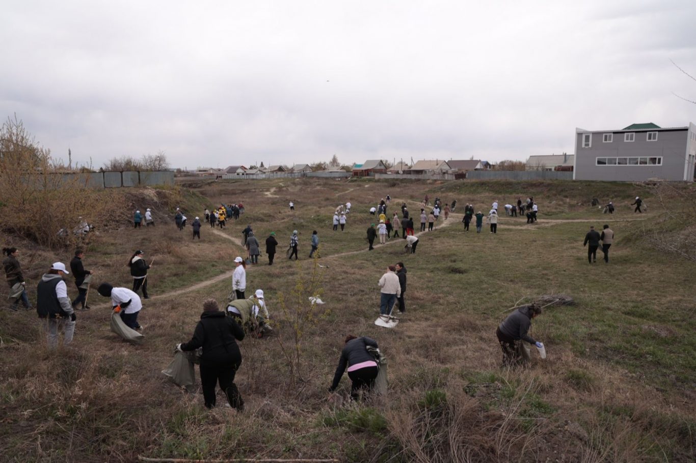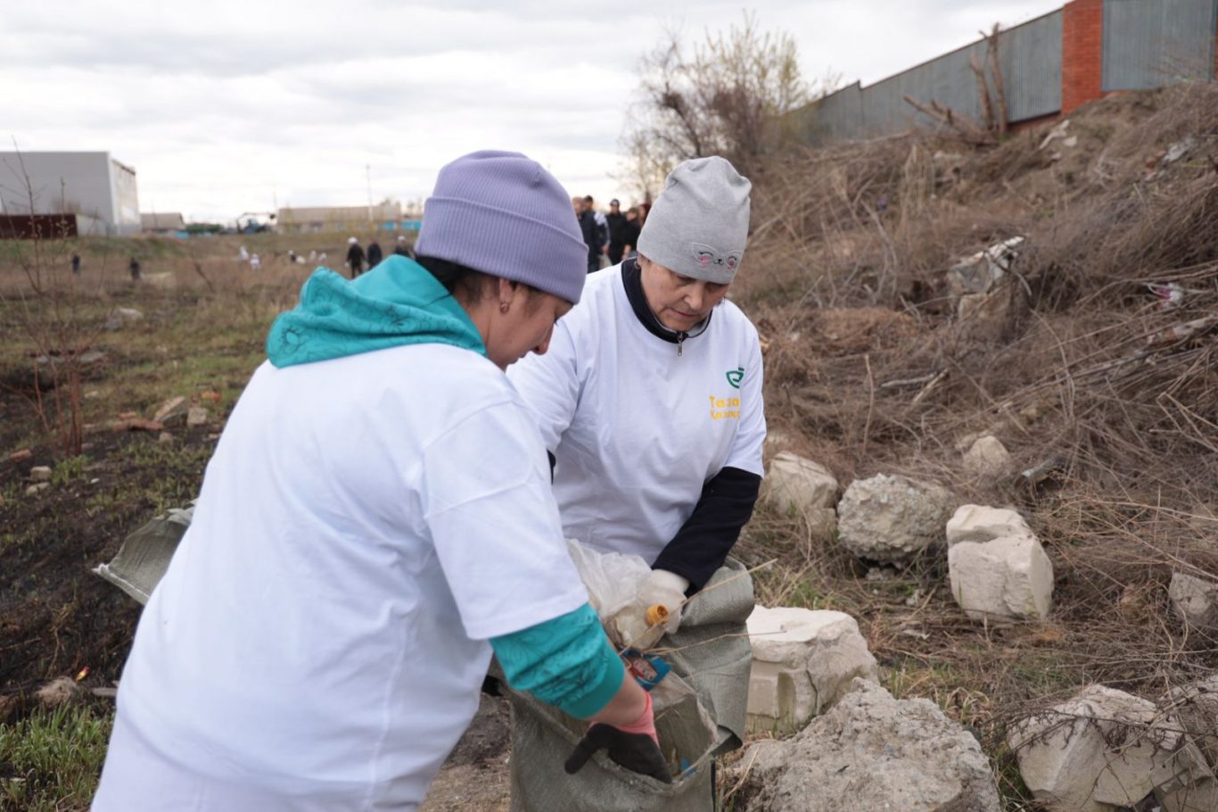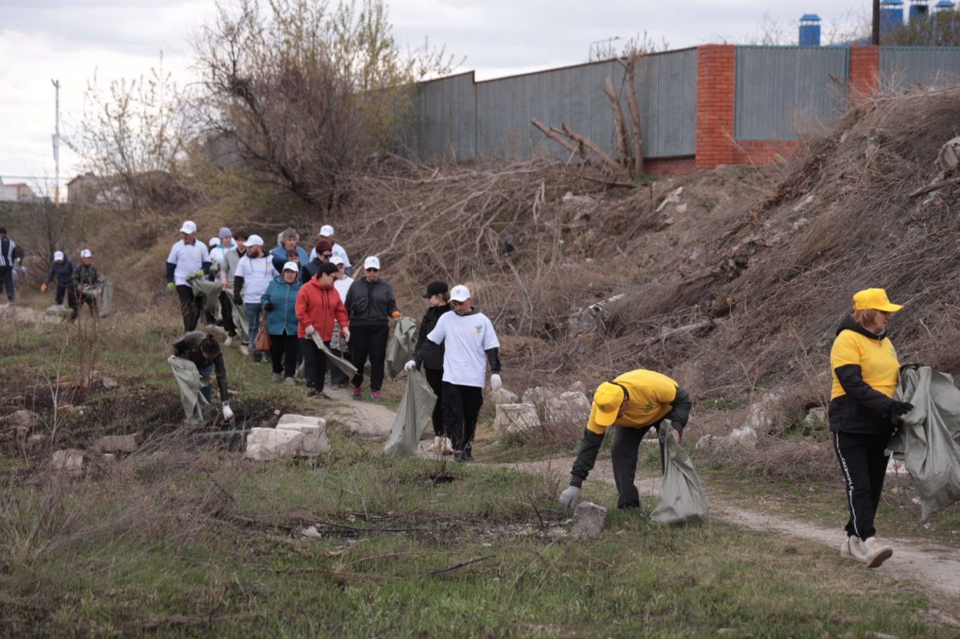 В уборке приняли участие более 300 человек — сотрудники госучреждений, студенты, волонтеры — все, кому небезразличен город. Формат сделали соревновательным: участники делятся на команды, собирают и сортируют мусор — пластик, стекло, крупные отходы. За это начисляются баллы, а победители получают призы.