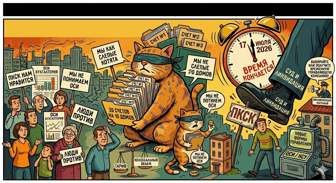 В областном центре нарастает напряжение вокруг реформы управления многоквартирными домами. Уже 17 июля 2026 года КСК и ПКСК должны перейти на новую форму управления. В противном случае их ждет принудительная ликвидация через суд.