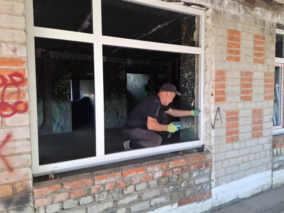 Реализует проект тоже местная фирма. Подрядчик, зайдя на объект меньше двух месяцев назад, уже успел отремонтировать кровлю, заменить электропроводку и коммуникации. Завершают установку стеклопакетов и уже начали работы по внутренней отделке.