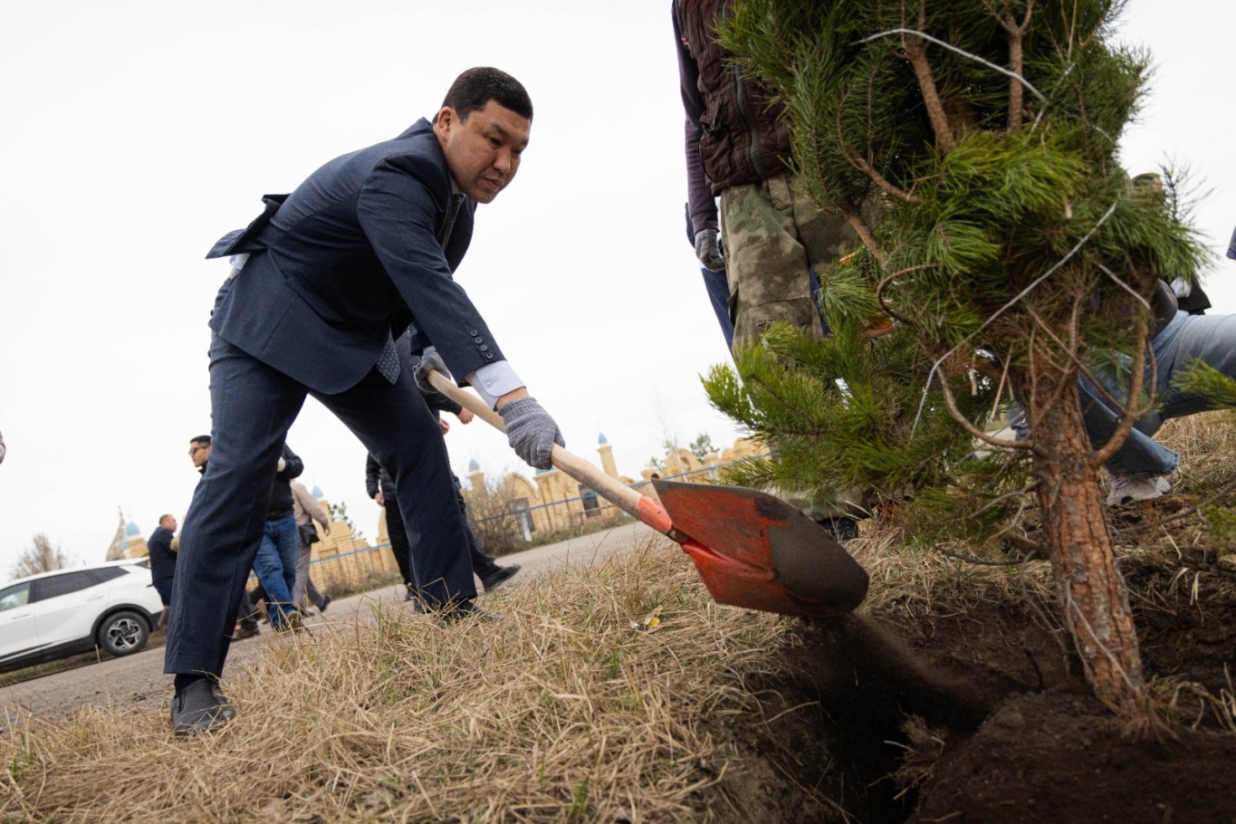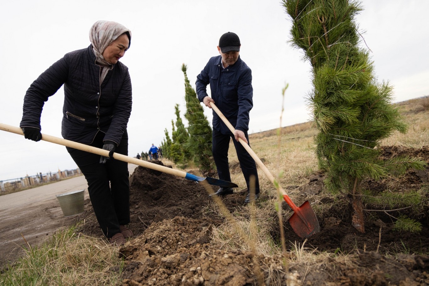 Сегодня депутаты областного, городского и районного маслихатов Костанайской области приняли участие в посадке башкирских сосен вокруг мусульманского кладбища в г. Тобыле.