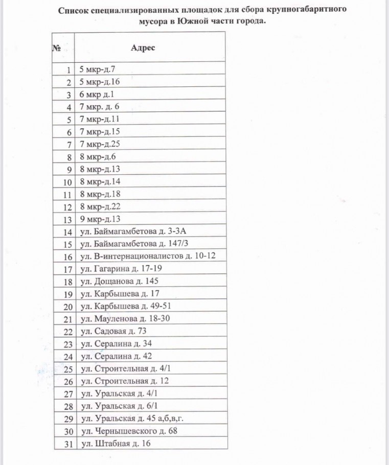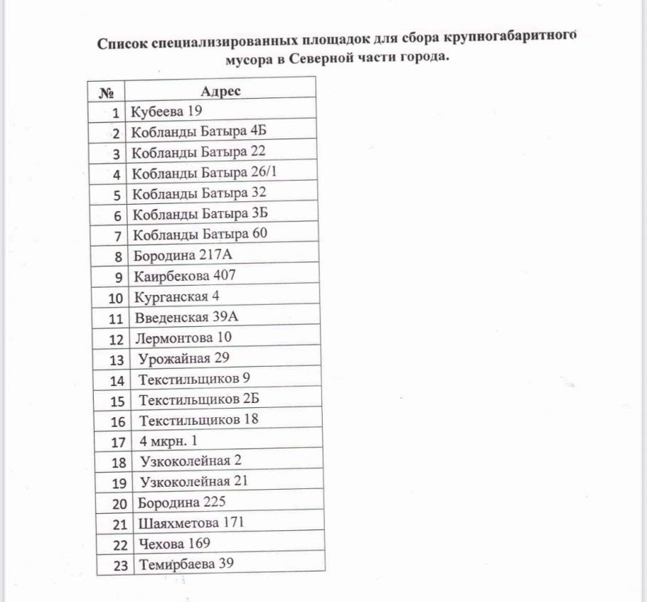 Для южной части города на аналогичные работы направлено 134 миллиона тенге, где подрядчиком является ТОО «Конгломерат.KZ». Здесь обустроена 31 специальная площадка. Эти площадки представляют собой огороженное с трех сторон профлистом пространство с асфальтированным основанием размером 4×4 метра. Здесь нет бункеров: крупногабаритный мусор выносится и оставляется непосредственно на самой площадке для последующего вывоза.