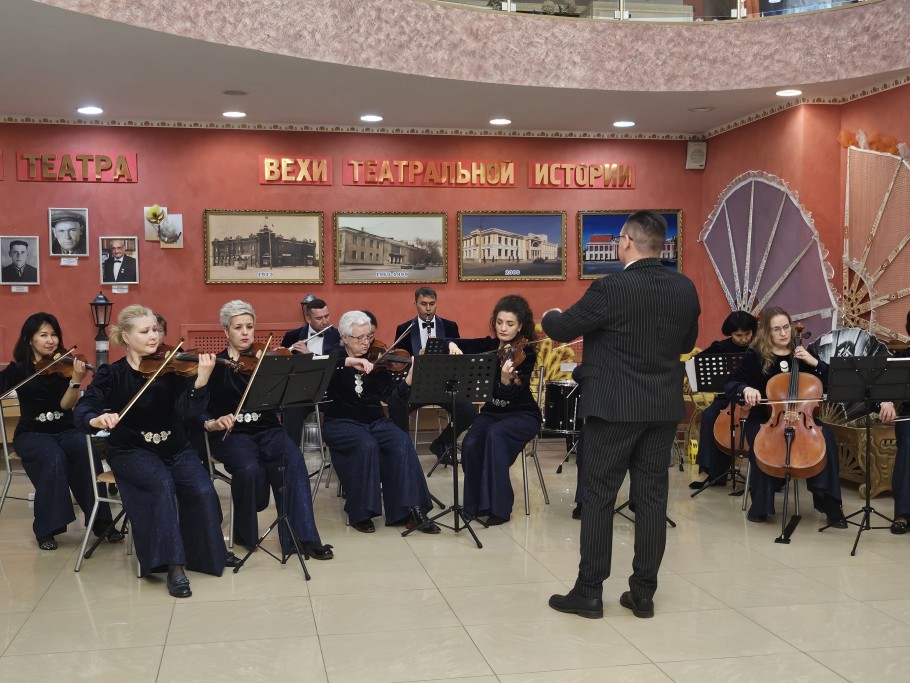Уже в 19:00, за полчаса до открытия, фойе театра не пустовало: гости, сотрудники театра, камерный оркестр местной филармонии.