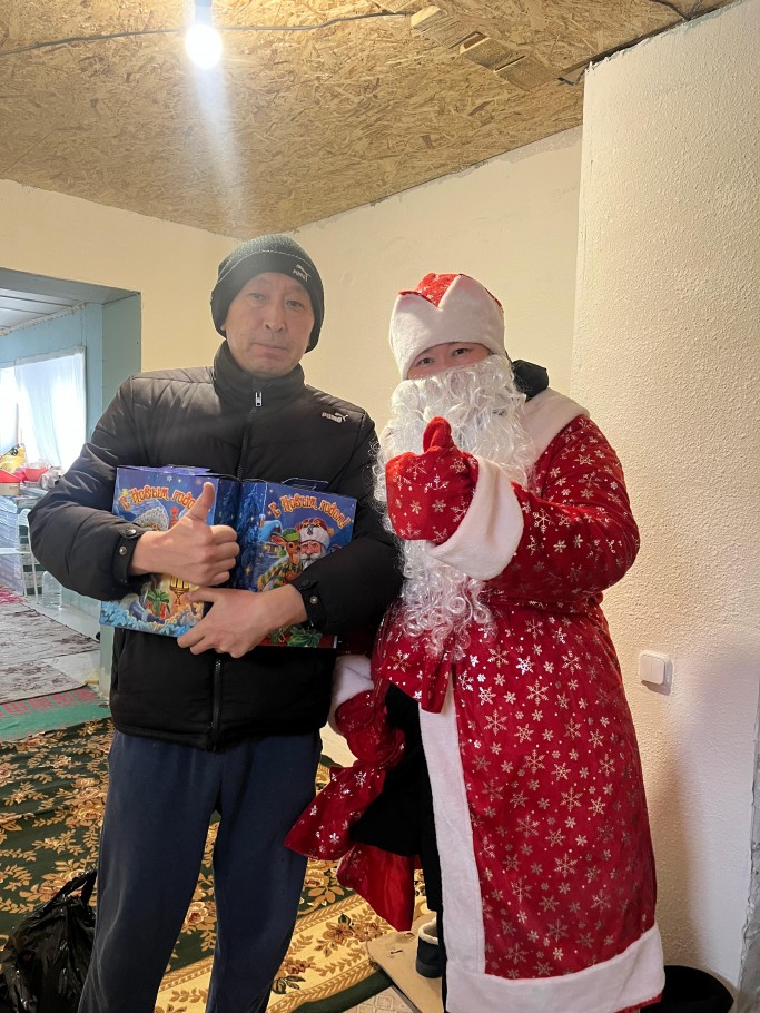 С поздравлениями соцработник вместе с психологом Фаризой Жахиной посетили двух ветеранов ВОВ – Михаила Петруковича и Касымхана Алдабергенова, а также детей с инвалидностью и малообеспеченные семьи.