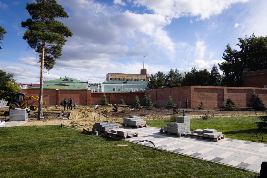 Второй сквер обустраивают на пересечении улиц Касымханова и Тәуелсіздік. Особенность этого объекта в том, что впервые в Костанае дорожное покрытие заменяют на брусчатку.