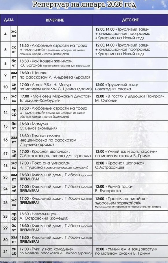 Афиша на 10-11 января от «Нашего Костаная».