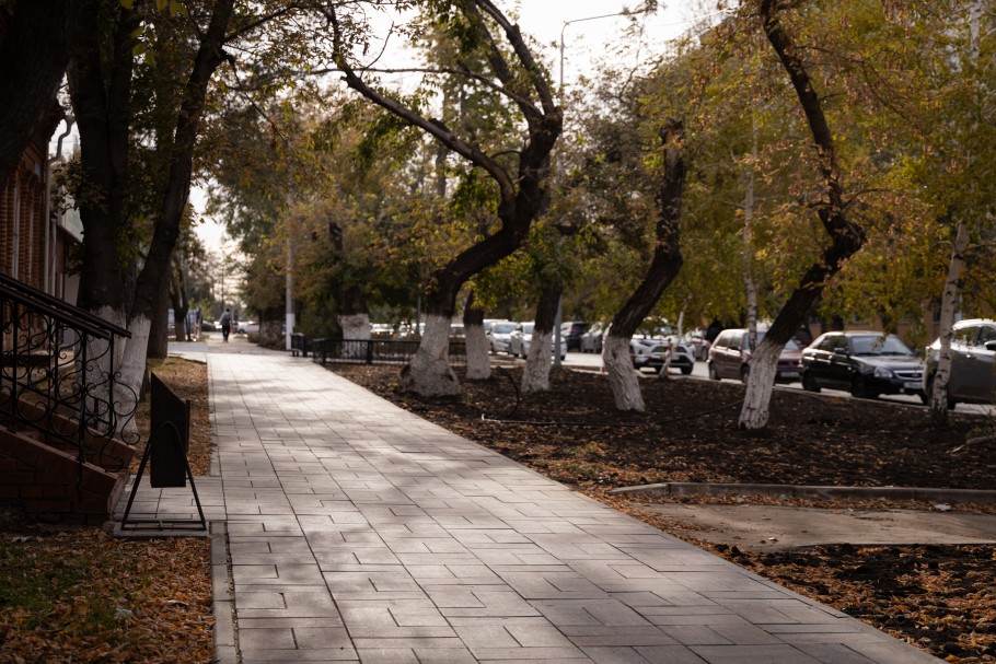 На участке уже уложена брусчатка на дорожном полотне — ее стиль напоминает европейские улочки. По словам акима города Марата Жундубаева, это экспериментальное решение.