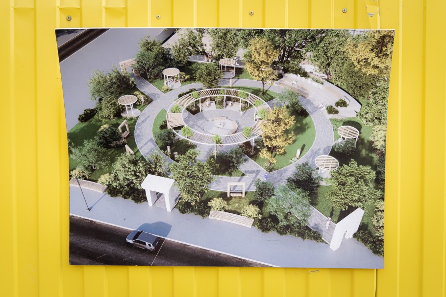 В центре будущего общественного пространства планируется установить круговую перголу с зонами отдыха. Центральным элементом станет арт-объект, символизирующий Костанай. Его высота не превысит двух метров, а ширина составит около метра. По задумке архитекторов, композиция может быть выполнена в виде световой или мультимедийной инсталляции.