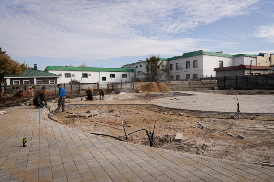 Как проходит строительство нового сквера на улице Касымханова в Костанае?