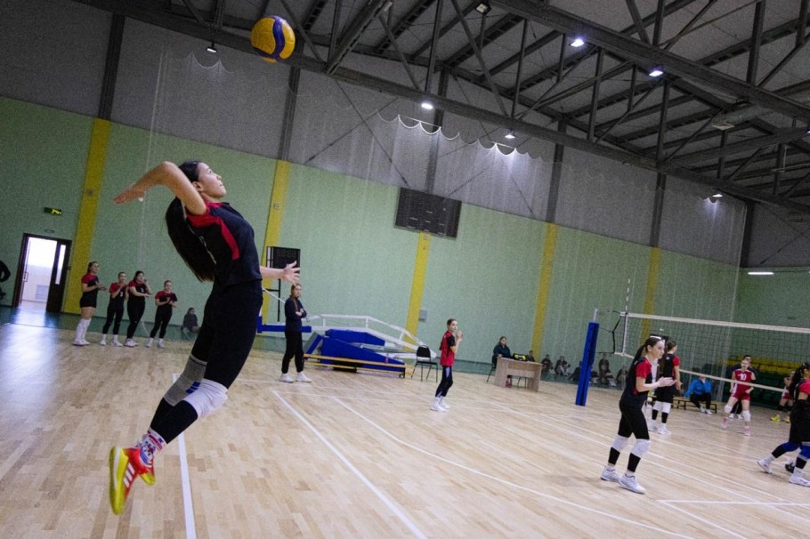 На момент нашего визита в спортивном комплексе вовсю шли волейбольные баталии — параллельно проходили игры сразу на двух площадках. Юные спортсменки активно поддерживали свои команды, громко ликуя каждому результату в их пользу.