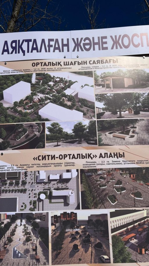 В начале апреля в рамках общегородского субботника аким Марат Жундубаев представил проделанную работу по благоустройству парков и городских территорий. На одном из плакатов, помимо триатлон-парка, набережных и т. д., был изображен и эскизный проект обновления Сити-центра. Главная пешеходная артерия города может получить современный облик, кардинально отличающийся от привычного сегодня оформления.