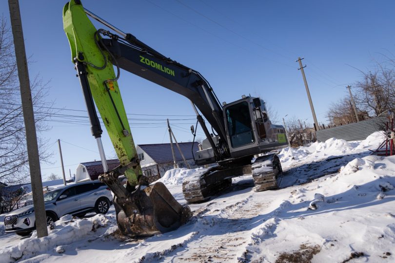 О “раскопках” длиной в несколько лет в районе ул. Соколовской-Комарова напоминает экскаватор подрядной организации, который не смогли завести