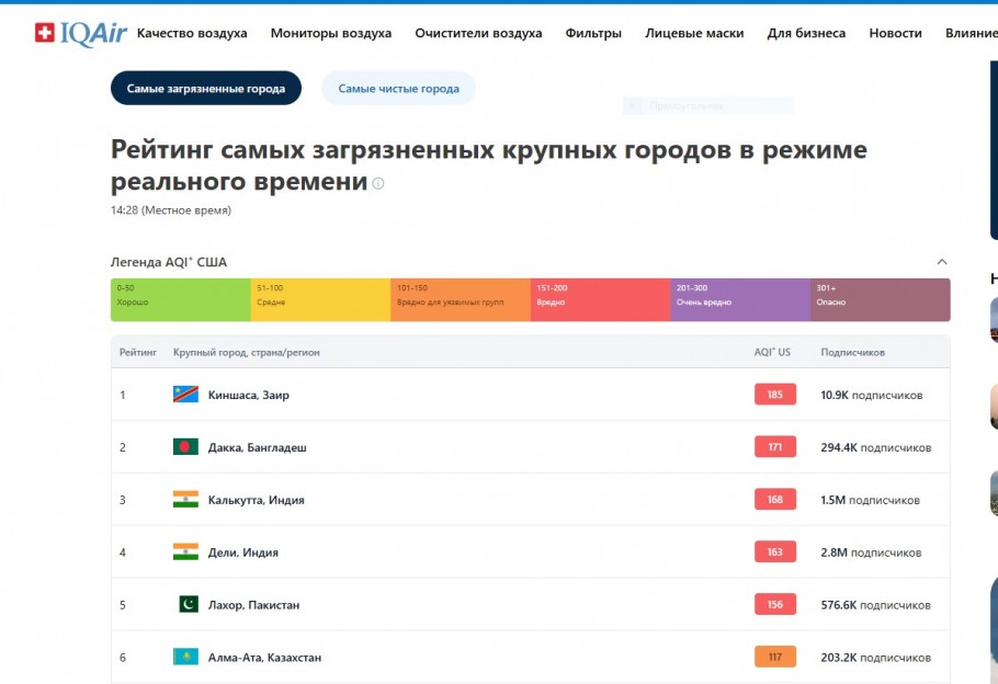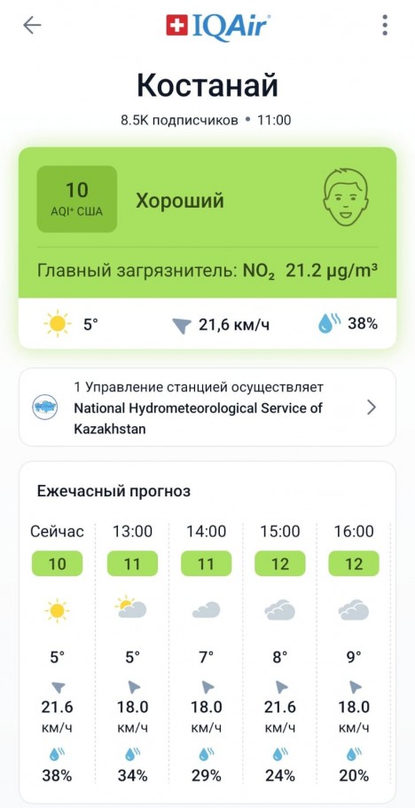 На сайте IQAir на города можно даже подписываться. За обстановкой в Костанае следят 8,5 тыс. человек.