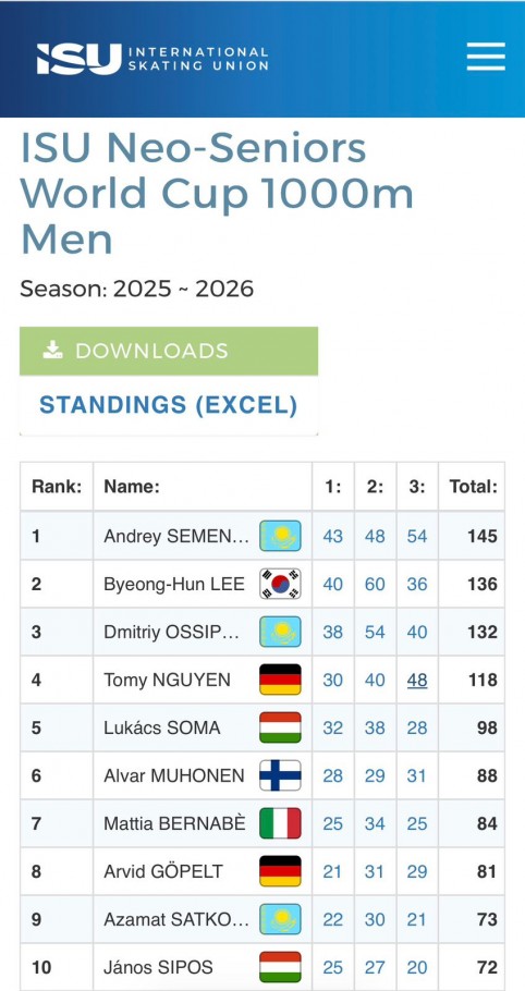 Андрей Семенов возглавил мировой рейтинг среди Neo-Seniors на дистанции 1000 метров.