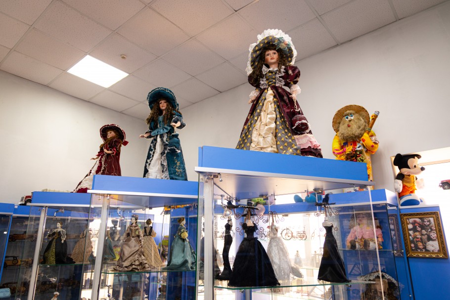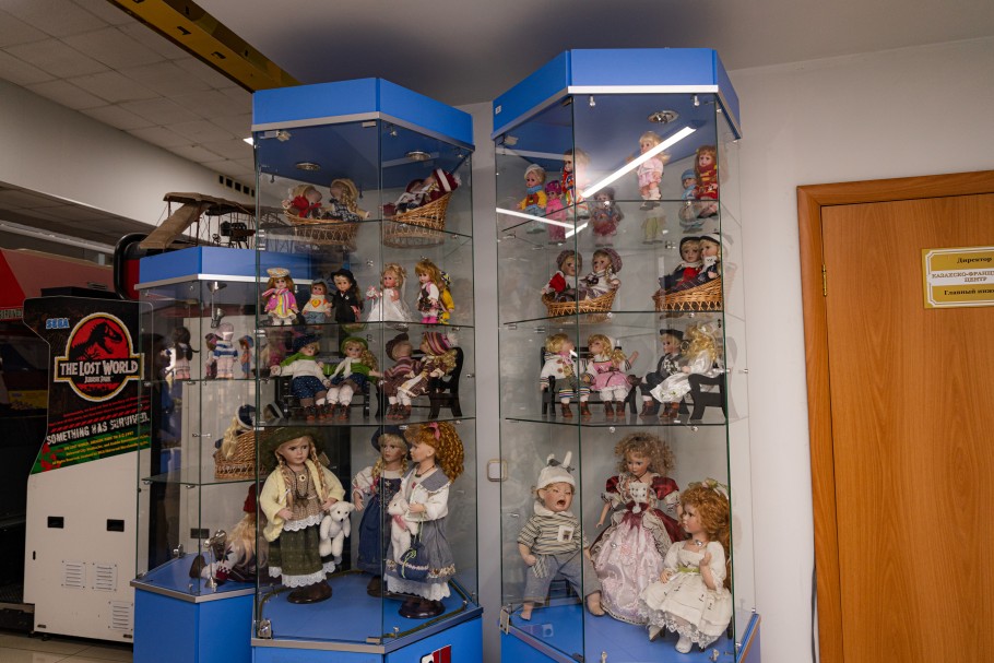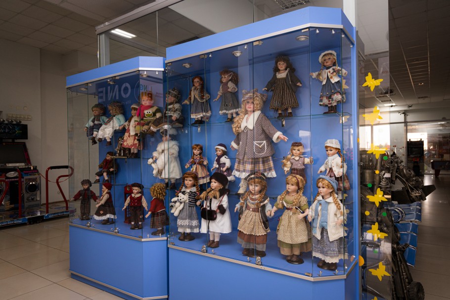 Музей игрушек находится в самом центре Костаная, но найти его непросто. Он расположился в закутке на четвертом этаже Казахско-французского центра, сюда редко заходят посетители. Свои двери музей распахнул в 2007-м — в год открытия торгового центра. Первоначально коллекция уместилась в небольшой комнатке, однако игрушек становилось все больше. Пространство заполнилось до отказа, и часть экспонатов пришлось вынести за пределы помещения.