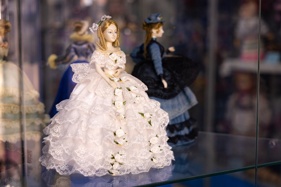 Большая часть – точные копии, но есть и оригиналы. Так, к примеру, французские фарфоровые куклы XIX века со временем стали очень хрупкими. Как отметили сотрудники центра, на стеллаже их закрепили прочно, но когда приходит время уборки, за одним экспонатом следят сразу три человека.