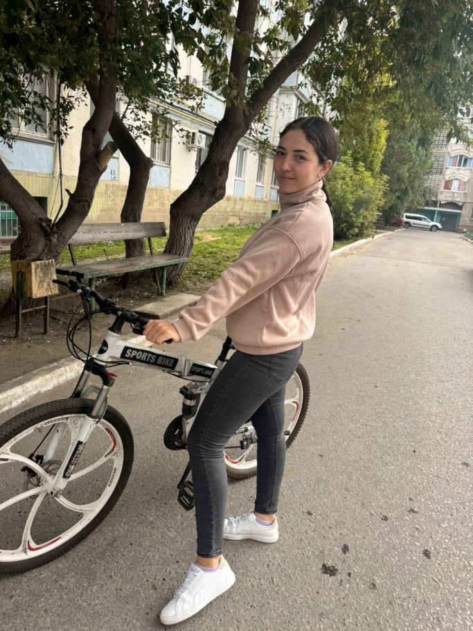 – Весной купила себе 12-дюймовый A-bike BMW 2024. На тот момент ездила плохо, выбирала практичный транспорт, чтобы было комфортно на нем передвигаться. Катаюсь каждое утро и вечер. Когда приобрела велосипед, главной целью было поддержка здоровья и своей физической формы. К слову, это оказалось эффективным, так как езда позволяет сжигать много калорий и укрепляет мышцы ног, – поделилась Мирагуль.